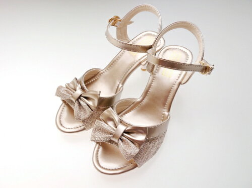 キラキラヒールアップドレスシューズ サンダル 夏 子供 靴 中学生 高校生 ママ お揃い 女の子 リボン ラメ ローヒール 歩きやすい 発表会 フォーマル 可愛い かわいい お洒落 40001アンクル部分のホックは脱ぎ履きしやすいフックタイプ。