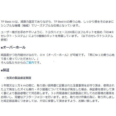 RS-R 車高調 TP Basic-i キット2B+ショック・ブロック・バンプ [ハイエース200 KDH201V] RS★R・RS☆R・RSR 車高調 代引手数料無料 送料無料(沖縄・離島除く)