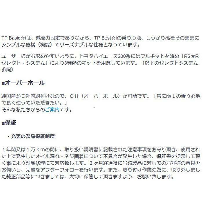RS-R 車高調 TP Basic-i キット2B+ショック・ブロック・バンプ [ハイエース200 TRH200V] RS★R・RS☆R・RSR 車高調 代引手数料無料 送料無料(沖縄・離島除く)