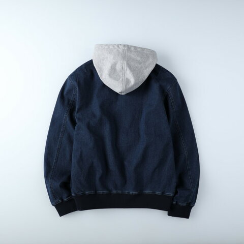 ストレッチ性のある着心地の良いフード脱着リブブルゾン。