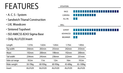 【FEATYRES】 ・A.C.S-System ・Sandwich Tianal Construction ・LVL Woodcore ・Sintered Topsheet ・ISO AMICSS 8243 Sigma Base ・Only ALLFLEX Insert ※こちらの商品はご予約商品の為、お届けは10〜12月頃からお届け開始予定です。